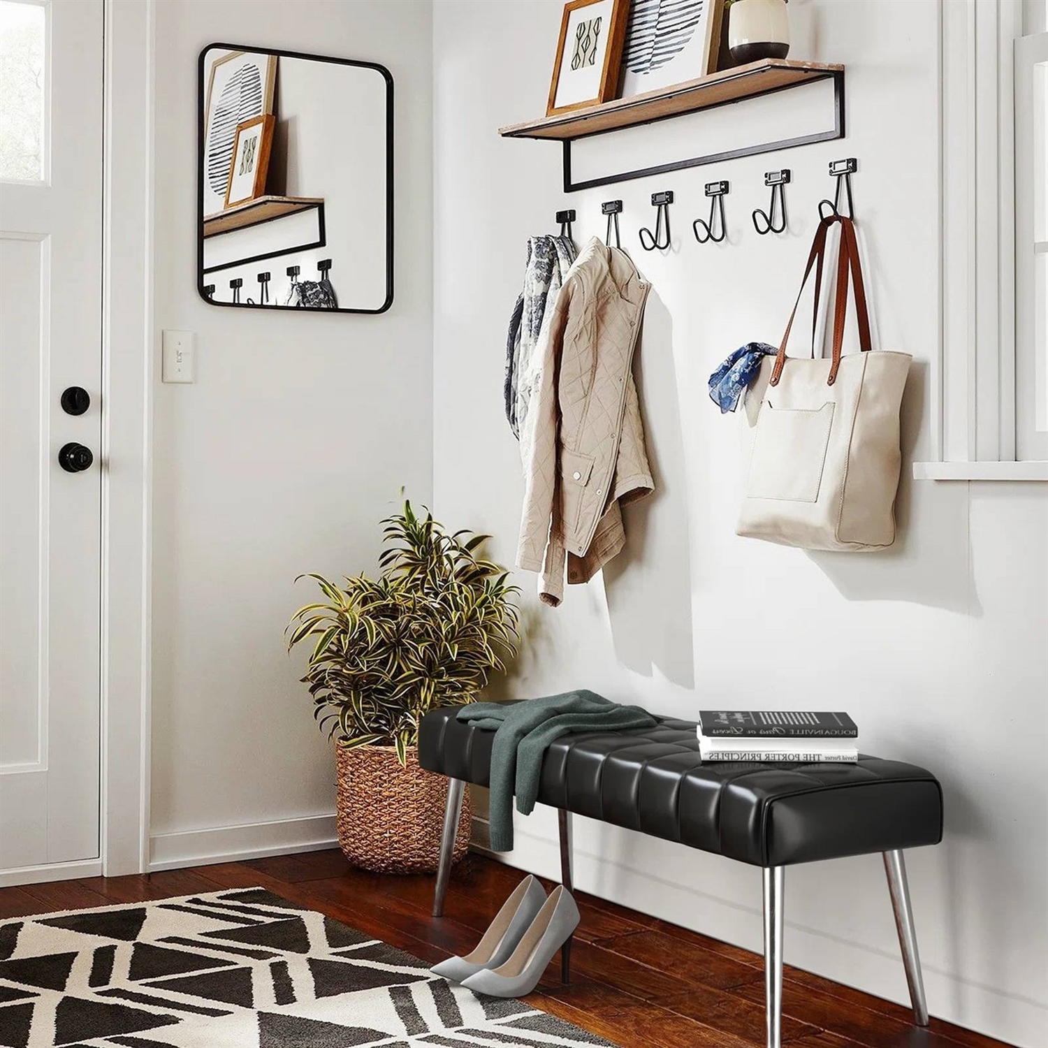 Mid-Century Modern End of Bed Bench with Black PU Leather Seat and Tapered Legs Mid-Century Modern End of Bed Bench with Black PU Leather Seat and Tapered Legs Mid-Century Modern End of Bed Bench with Black PU Leather Seat and Tapered Legs Mid-Century Modern End of Bed Bench with Black PU Leather Seat and Tapered Legs Mid-Century Modern End of Bed Bench with Black PU Leather Seat and Tapered Legs