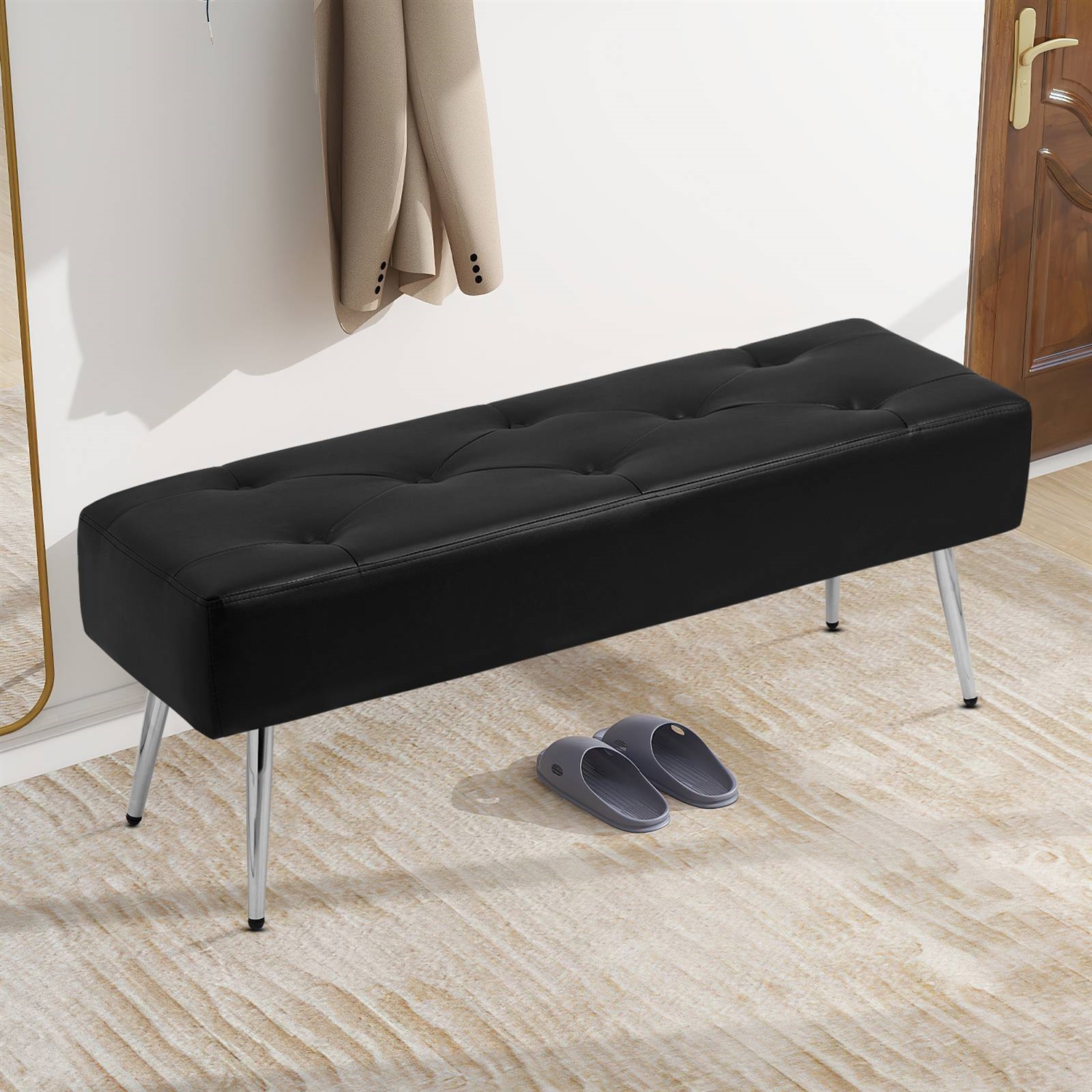 Home > Mid Century Modern Bedroom Bench Ottoman with Black PU Leather Seat