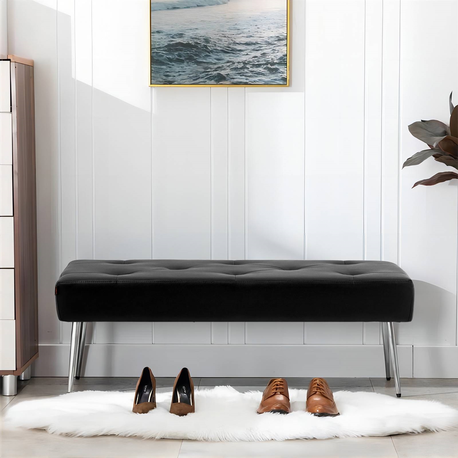 Mid Century Modern Bedroom Bench Ottoman with Black PU Leather Seat