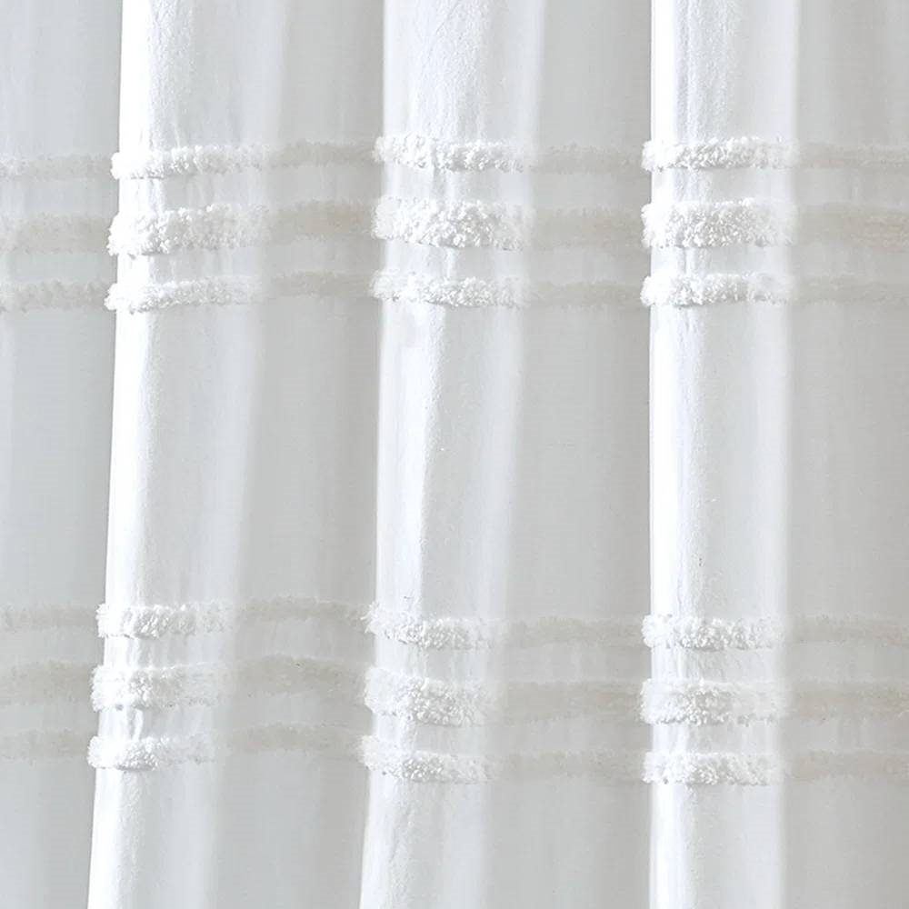72-inch White Cotton Chenille Stripe Shower Curtain - Machine Washable