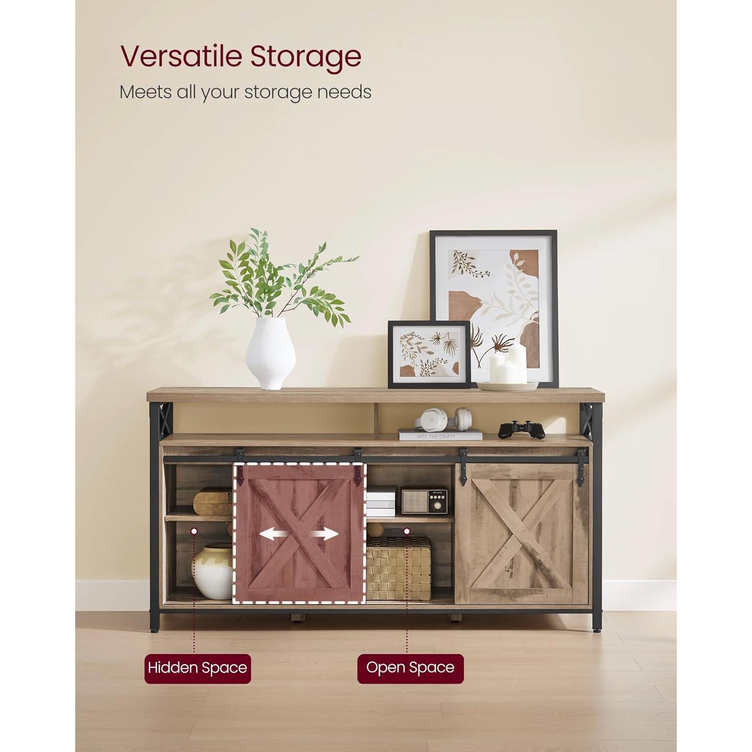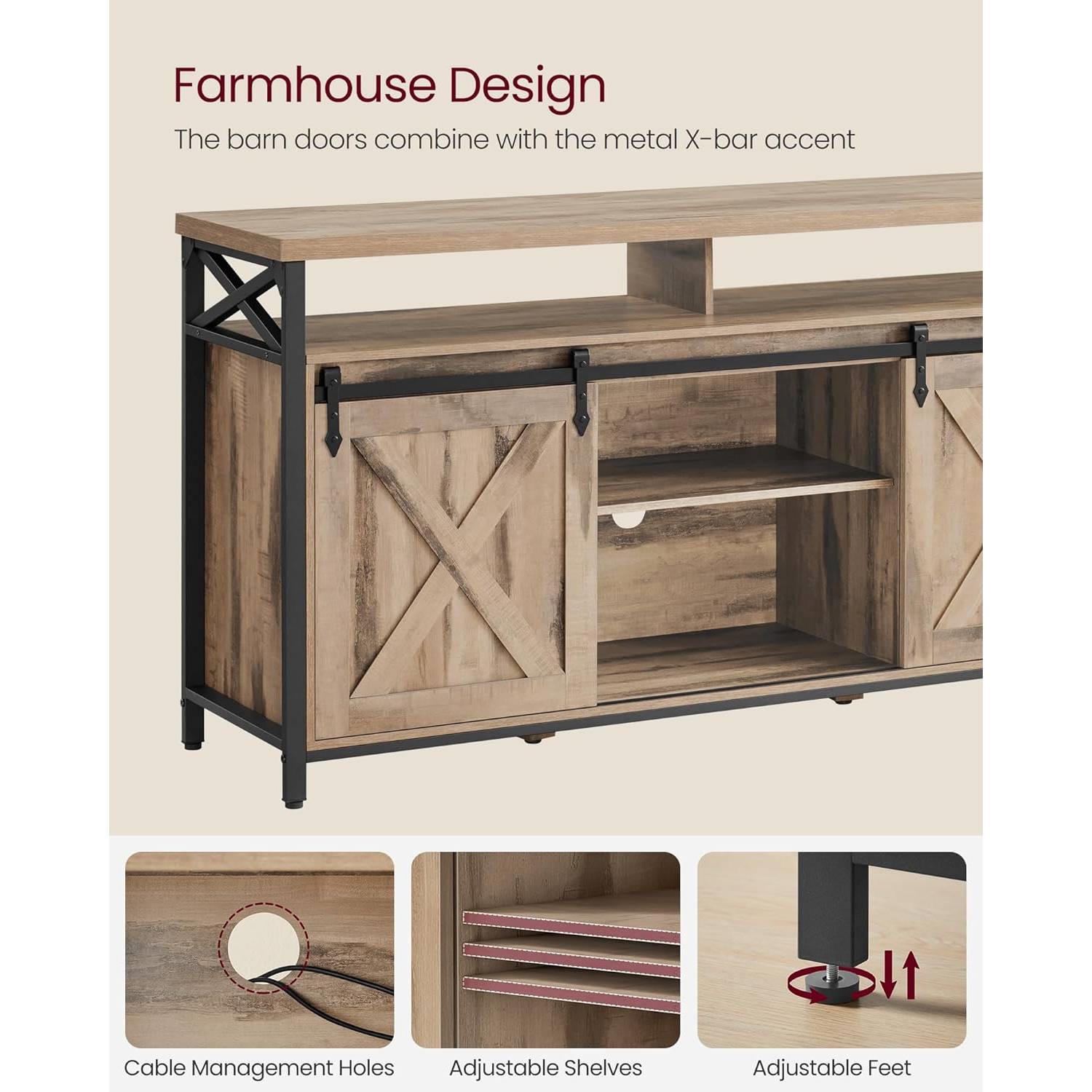 Modern Farmhouse TV Stand with Sliding Barn Doors for TV up to 65-inch