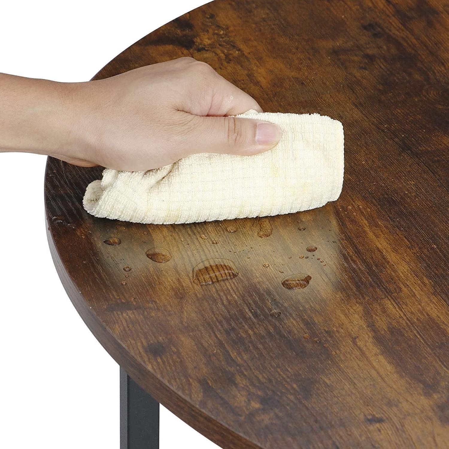 Modern Round Industrial Coffee Table with Rustic Brown Wood Top