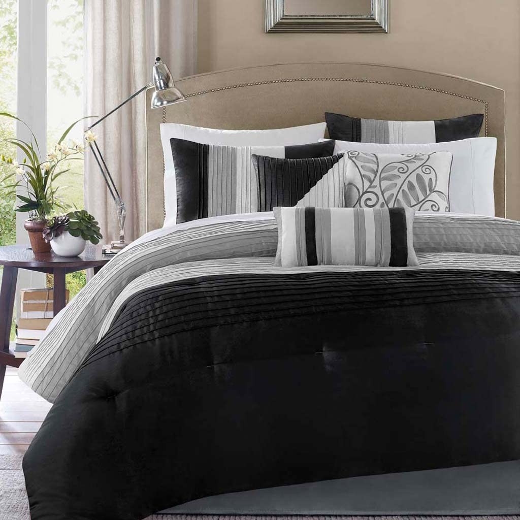 King Size 7 Piece Bed In A Bag Comforter Set Faux Silk Black Gray Stripes King Size 7 Piece Bed In A Bag Comforter Set Faux Silk Black Gray Stripes King Size 7 Piece Bed In A Bag Comforter Set Faux Silk Black Gray Stripes King Size 7 Piece Bed In A Bag Comforter Set Faux Silk Black Gray Stripes King Size 7 Piece Bed In A Bag Comforter Set Faux Silk Black Gray Stripes King Size 7 Piece Bed In A Bag Comforter Set Faux Silk Black Gray Stripes