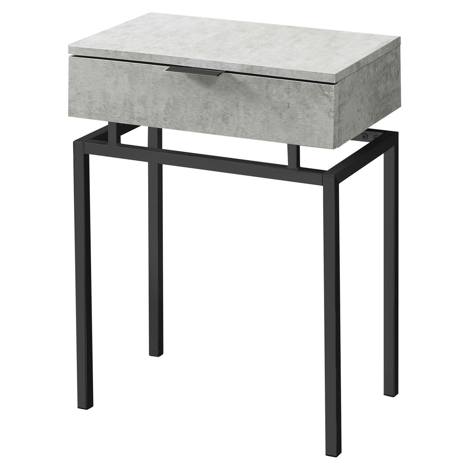 24in Modern End Table 1 Drawer Nightstand Grey with Black Metal Legs