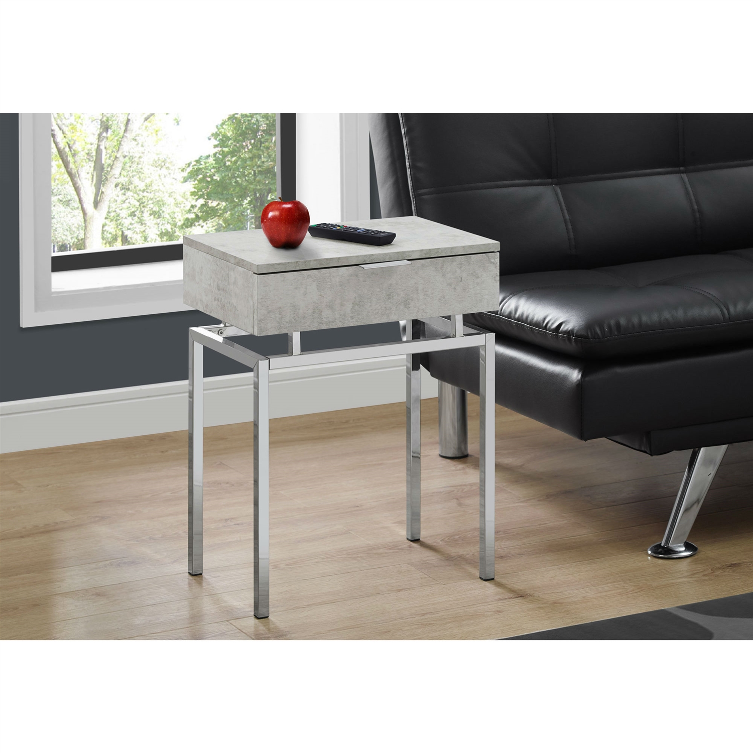 Home > 24in Modern End Table 1 Drawer Nightstand Grey with Chrome Metal Legs