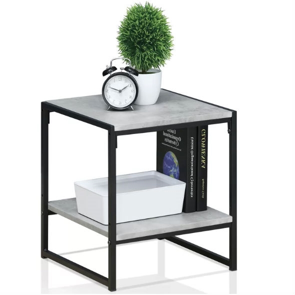 Modern Metal Frame End Table Nightstand with Faux Stone Top and Bottom Shelf