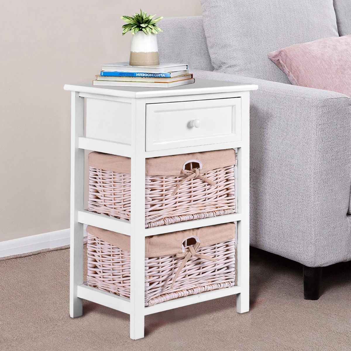 White Wooden 1-Drawer End Table Nightstand with 2 Baskets White Wooden 1-Drawer End Table Nightstand with 2 Baskets White Wooden 1-Drawer End Table Nightstand with 2 Baskets White Wooden 1-Drawer End Table Nightstand with 2 Baskets White Wooden 1-Drawer End Table Nightstand with 2 Baskets White Wooden 1-Drawer End Table Nightstand with 2 Baskets