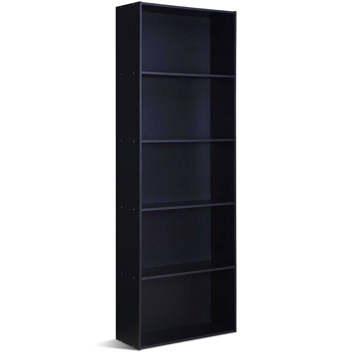Home > Modern 5-Shelf Bookcase Storage Shelves in Black Wood Finish