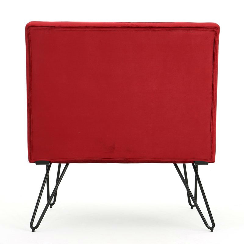 Red Velvety Soft Upholstered Polyester Accent Chair Black Metal Legs