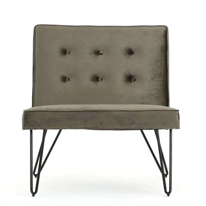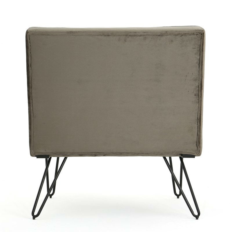 Home > Gray Velvety Soft Upholstered Polyester Accent Chair Black Metal Legs