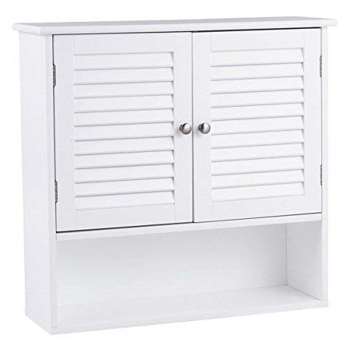 White Wall Mount Bathroom Cabinet with Louver Doors and Metal Knobs White Wall Mount Bathroom Cabinet with Louver Doors and Metal Knobs White Wall Mount Bathroom Cabinet with Louver Doors and Metal Knobs